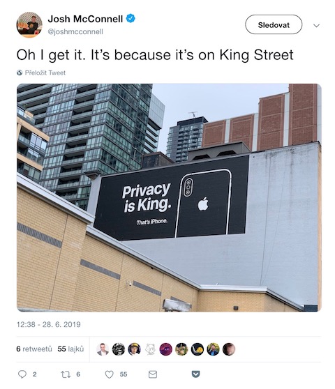 Když se veletrh CES konal v roce 2019, nechal Apple vyvěsit v blízkosti Las Vegas Convetion Center dva velké billboardy, na kterých zdůrazňoval svůj zodpovědný přístup k soukromí svých uživatelů. V loňském roce zase přímo na veletrhu vystoupila Jane Horvath, která má v Applu na starost soukromí. V průběhu svého proslovu promluvila mimo jiné o tom, jakým způsobem společnost Apple využívá šifrování k lepší ochraně uživatelských dat. Apple se opakovaně nechává slyšet, že soukromí a bezpečnost jeho uživatelů je pro něj prioritou, a často v tomto směru vylepšuje své produkty, služby i jednotlivé aplikace.