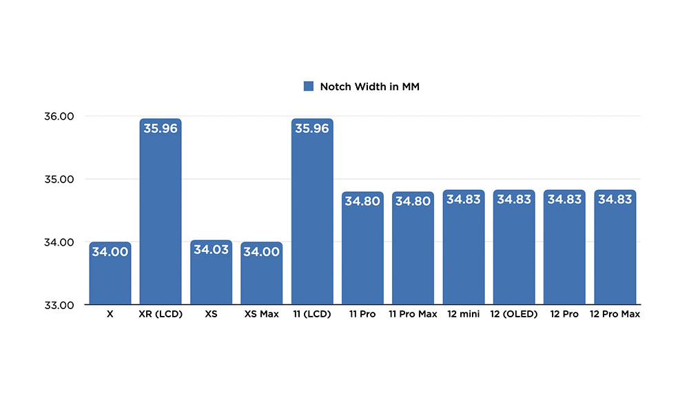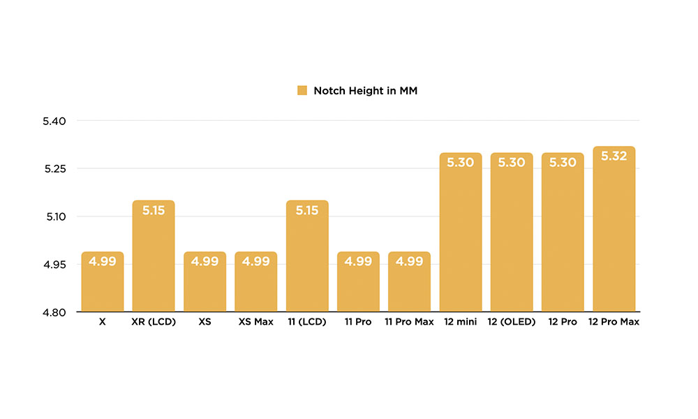 Ačkoliv se výřezy v displeji iPhonů zdají od modelu X až po 12 Pro Max velikostně naprosto shodné, pravdou je, že tomu tak není. Rozměrově se totiž mezi jednotlivými modely mírně liší. A když říkáme mírně, myslíme tím opravdu mírně – řeč je totiž v tomto případě o setinách desetinách milimetrů, které samozřejmě nemáte pouhým okem prakticky šanci zaregistrovat. Poměrně zajímavé je pak i to, že značné rozdíly ve velikosti dělal až do roku 2019 typ displeje, kdy u OLED modelů byly výřezy celkově o něco málo menší než u LCD modelů. Tyto rozdíly se však s příchodem řady 12 téměř smazaly, jelikož jsou její výřezy rozměrově velmi podobné těm z LCD modelů. O jakých rozměrech konkrétně se tu bavíme?