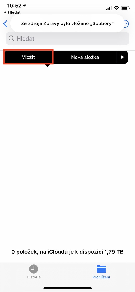 - V tomto menu už jen stačí klepnout na možnost Vložit.