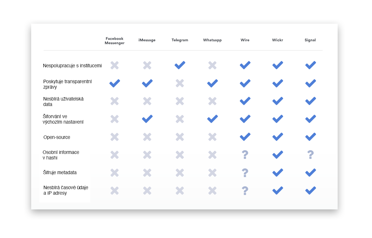 - + Používá šifrování z aplikace Signal