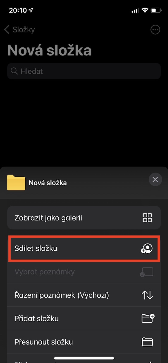 Většina z vás ví, že jednotlivé poznámky můžete sdílet mezi vícero uživatelů. Jednu poznámku tak může spravovat hned několik jedinců, což se v určitých situacích rozhodně hodí. Věděli jste však o tom, že můžete sdílet také celé složky s poznámkami? Díky tomu není nutné sdílet více poznámek jednu po druhé. Chcete-li sdílet složku s poznámkami, tak se v Poznámkách přesuňte na přehled složek (tlačítko Složky vlevo nahoře). Poté se do konkrétní složky přesuňte a vpravo nahoře klepněte na ikonu tří teček. Otevře se menu, kde už jen stačí klepnout na Sdílet složku. Poté vyplňte potřebné náležitosti a je hotovo.