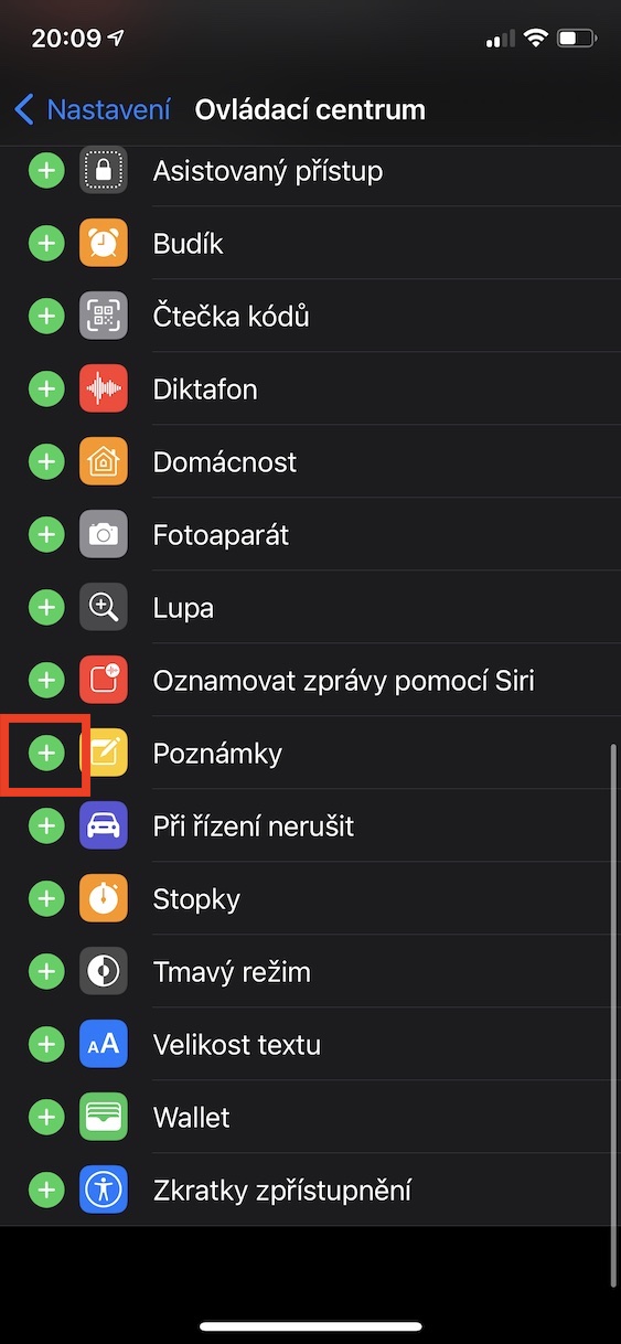 V nedávné aktualizaci operačního systému iOS jsme se dočkali nové funkce, díky které si můžete ikonu aplikace Poznámky přidat také do ovládacího centra. Díky tomu můžete ihned zaznamenat novou poznámku i v případě, že je vaše zařízení uzamknuté. To se hodí v případě, že máte v hlavě nějakou myšlenku a hrozí, že ji za chvíli zapomenete. Chcete-li Poznámky do ovládacího centra přidat, tak přejděte do Nastavení, kde rozklikněte kolonku Ovládací centrum. Nyní sjeďte níže a pomocí ikony + u řádku Poznámky tento prvek do ovládacího centra přidejte. Změnit můžete samozřejmě také jeho pozici. Novou poznámku pak rychle přidáte tím způsobem, že otevřete ovládací centrum, klepnete na novou ikonu a ihned začnete psát.