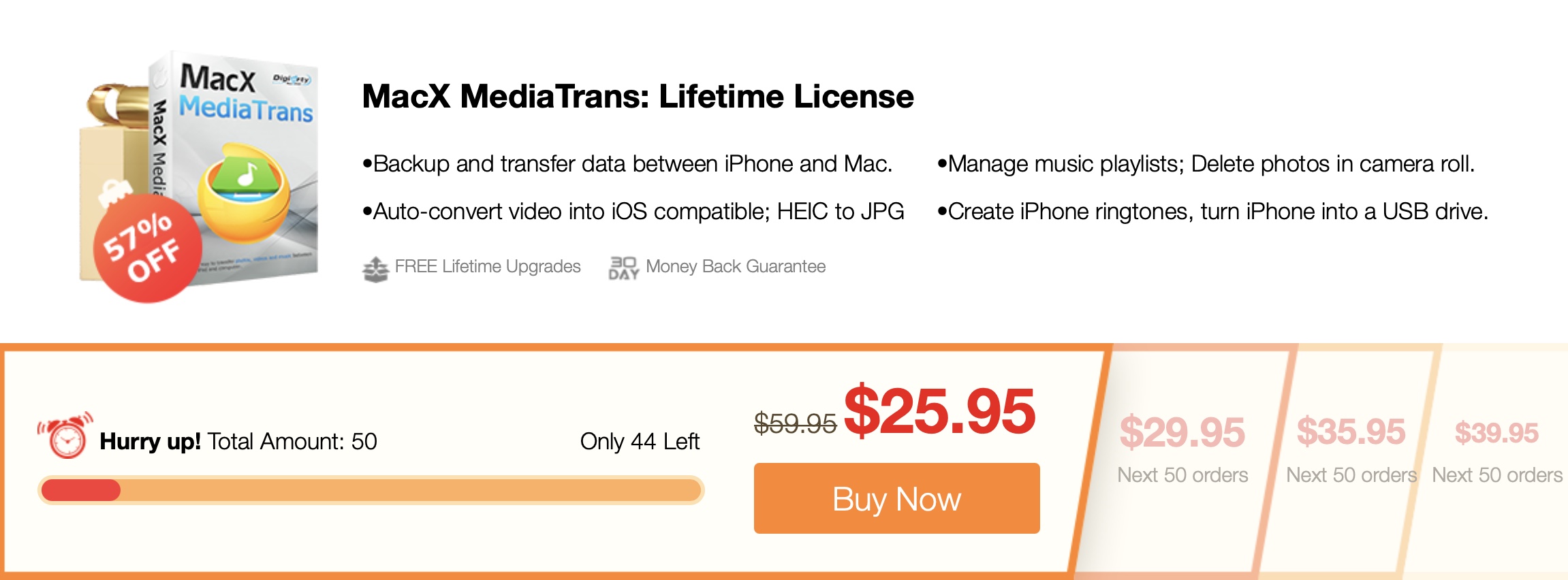 Výše jsme uvedli, že díky momentální akce můžete získat MacX MediaTrans 7.2 zcela zdarma, a to se všemi momentálně dostupnými funkcemi. Jakmile však dojde k aktualizaci programu, tak jej samozřejmě budete moci i nadále využívat, budete každopádně ochuzeni o veškeré nové funkce. I v tomto případě však přicházím s perfektní zprávou. Pokud jste si MacX MediaTrans pomocí výše uvedeného odkazu stáhli a zjistili jste, že vám opravdu vyhovuje, tak momentálně můžete využít druhé akce. V rámci té můžete program MacX MediaTrans v plné verzi a s podporou všech budoucích aktualizací získat za zvýhodněnou cenu. Zatímco klasicky byste za aplikaci zaplatili 59.95 dolarů, tak v rámci této akce ji získáte za pouhých 25.95 dolarů. Na rozhodnutí máte ještě více než týden, každopádně postupně se cena bude stále zvyšovat. 25.95 dolarů je tedy nejnižší cena, za kterou můžete MacX MediaTrans zakoupit.