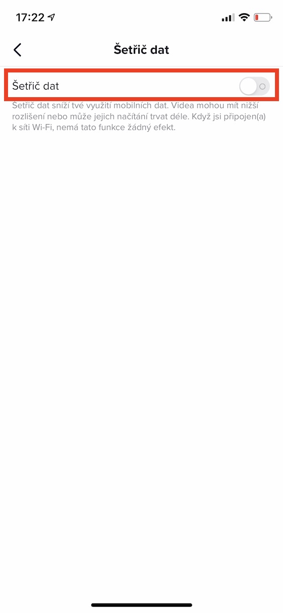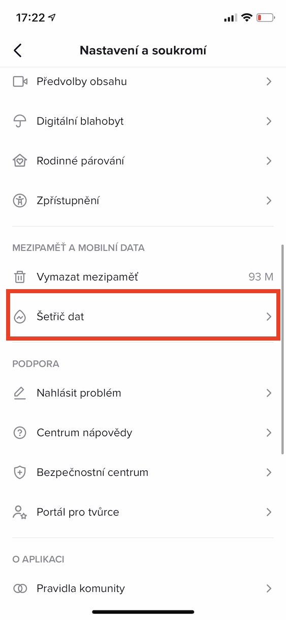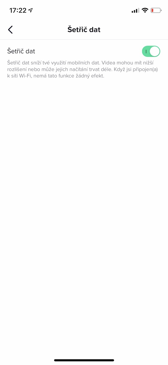 Pravdou je, že v současné době má k dispozici mobilní data většina z nás. Bohužel jsou ale v Česku datové balíčky stále vcelku drahé. Pokud tedy nemáte nějaký speciální firemní tarif, popřípadě pokud neplatíte za tarif tisíc korun, tak máte nejspíše měsíčně k dispozici jen několik stovek megabajtů, či jednotky gigabajtů mobilních dat. Bohužel s tím nic moc nenaděláme a nezbývá nám nic jiného, než se přizpůsobit a data šetřit. V rámci TikToku si naštěstí můžete nastavit spořič dat, který se postará o to, aby došlo k co největší ušetření mobilních dat. Chcete-li spořič dat aktivovat, tak vpravo dole klepněte na Já, a poté na ikonu tří teček vpravo nahoře. Poté sjeďte o kus níže a rozklikněte kolonku Šetřič dat, který pak stačí přepínačem aktivovat. Videa poté na mobilních datech budou mít nižší rozlišení.