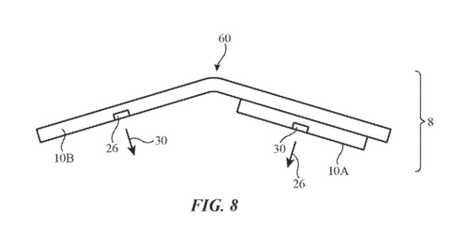 Patentová přihláška má název „Systém fotoaparátu u ohebných elektrických zařízeních“. A jako vždy platí, že text patentu je nejednoznačný. Ve zkratce můžeme říct, že přihláška popisuje ohebný kryt pro zařízení. Nejedná se ale o obyčejný popis krytu, jelikož text explicitně říká, že by na něj mohly být přidělány fotoaparáty, přičemž ohnutí pouzdra by mohlo být použito k zachycení panoramatických nebo trojrozměrných snímků. Text nám tedy naznačuje, že fotoaparáty by nemusely být přímo na zařízení a se smartphonem by mohly být propojitelné skrze Bluetooth nebo kabel. Na každý pád to opravdu nemusí znamenat, že by skládací iPhone dorazil bez fotoaparátu. Může jít například o situaci, kdy tento kryt s fotoaparátem nějakým způsobem rozšíří možnosti vestavěného fotoaparátu. Co Apple s touto patentovou přihláškou skutečně zamýšlí ukáže (možná) až čas. Její grafické vyhotovení můžete vidět na boku tohoto odstavce.