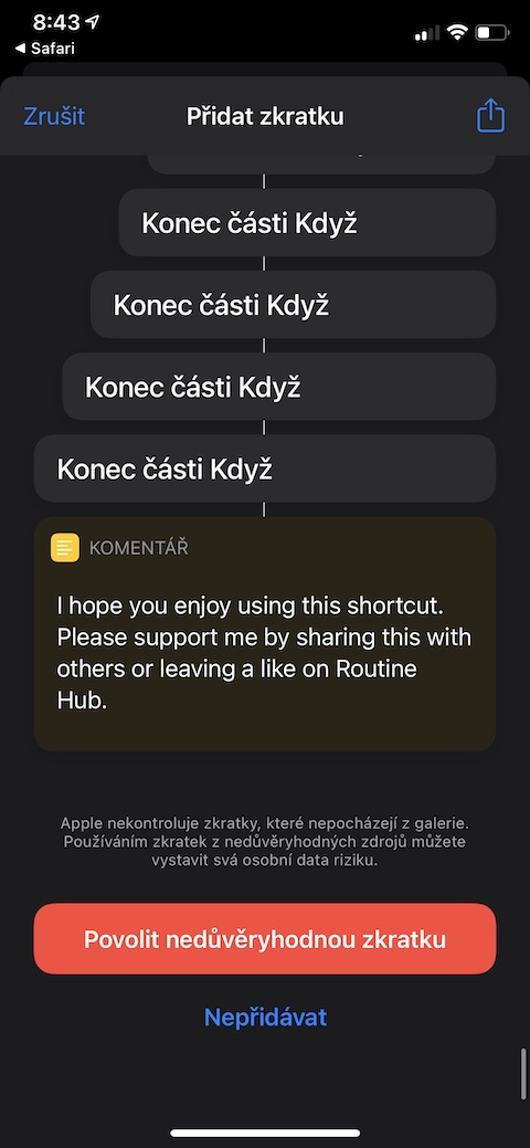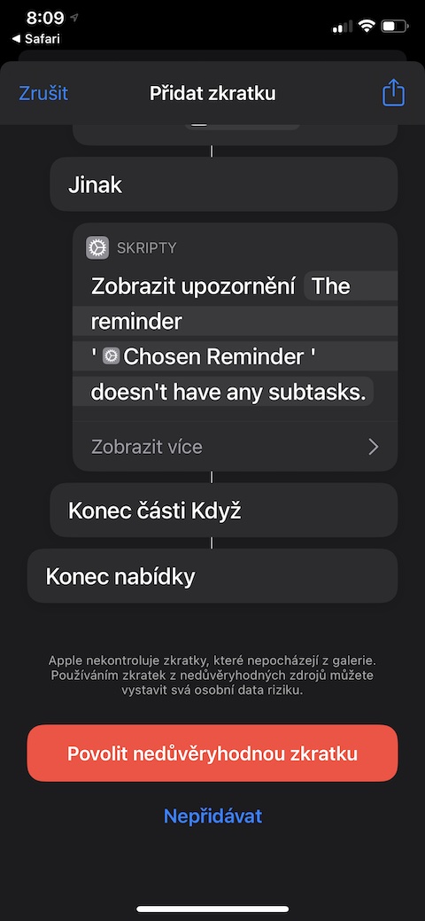 S blížícím se víkendem vám opět přinášíme další díl naší pravidelné rubriky o zajímavých zkratkách pro iOS. Tentokrát si představíme zkratky pro práci s připomínkami, prohlížečem Safari, pro recenze na knihy nebo třeba pro aktualizaci zkratek. Před instalací zkratky si vždy ověřte, zda jste na svém iPhonu v Nastavení -> Zkratky aktivovali používání nedůvěryhodných zkratek.