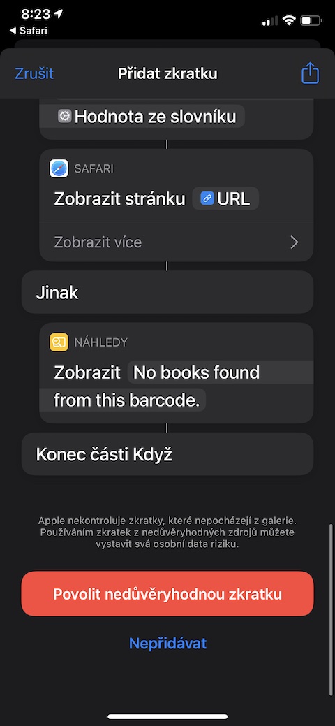 Těšíte se na to, až se opět otevřou knihkupectví? Než se toho dočkáme, můžete si alespoň stáhnout do svého iPhonu zkratku s názvem Scan Book. Pokud vás v knihkupectví nebo v antikvariátu zaujme neznámý knižní titul, a vy byste rádi zjistili, co na něj říkají ostatní čtenáři, můžete použít tuto zkratku k načtení ISBN kódu a zjištění příslušných recenzí na webu Goodreads. Zkratka vyžaduje přístup k fotoaparátu.