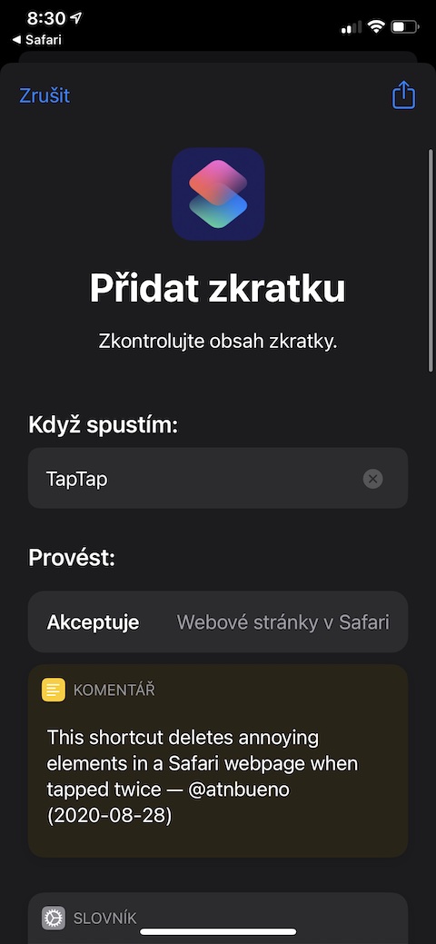Užitečná zkratka s názvem TapTap vám pomůže skrýt nežádoucí obsah při prohlížení internetových stránek v prostředí webového prohlížeče Safari na vašem iPhonu. Zkratka vypadá skoro kouzelně – při prohlížení Safari ji spustíte z listu sdílení a poté zkrátka jen klepnutím skrýváte obsah, který nechcete mít zobrazený. Jedním klepnutím obsah nejprve označíte, druhým klepnutím jej vymažete.