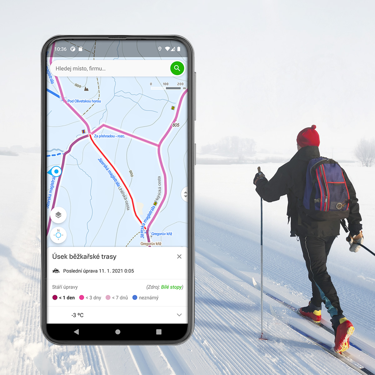 „Uživatelům poskytneme možnost sledovat vizualizace při plánování tras. Uvidí tak dopředu, jak kvalitně je terén na jejich trase upraven. Aplikace zobrazí i časový údaj, kdy přesně proběhla na konkrétním místě poslední korekce stopy,“ říká Jakub Faifer, produktový manažer Mapy.cz. Díky nové funkci se lidé ještě dozví, zda šlo o úpravu terénu prostřednictvím rolby či skútru, aby mohli vyrazit bezpečně tam, kde je upraveno. Potřebná data aplikace získává z projektu Bílé stopy,který poskytuje online zpravodajství o běžeckém lyžování v České republice a příhraničí. V budoucnu je v plánu rozšíření funkce o volbu sledovat pohyb roleb a skútrů i online.
