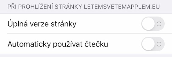 Tímto způsobem lze na vašem iOS či iPadOS zařízení nastavit, zdali bude mít konkrétní webové stránka přístup k mikrofonu a kameře. Kromě toho si ve výše uvedené sekci můžete také nastavit přístup webové stránky k poloze. V horní části této sekce se pak nachází Úplná verze stránky – pokud tuto možnost aktivujete, tak se webové stránka vždy načte v režimu pro počítače. Pokud dále aktivujete Automaticky používat čtečku, tak se čtečka vždy automaticky aktivuje pokaždé, jakmile to bude možné – například u různých článků.