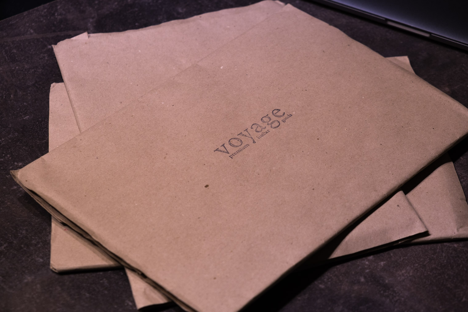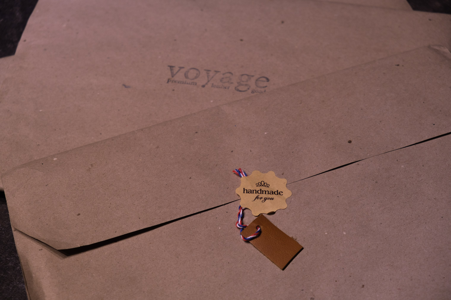 Už první pohled na balení naznačuje, že nepůjde o běžný obal za pár stovek, kterých je na trhu obrovské množství. Vkusná ručně vyráběná obálka z recyklovaného papíru, na jedné straně s natištěným logem Voyage, na straně druhé se vkusnou „pečetí“ s nápisem Handmade for you a ústřižkem kůže, jehož barva naznačuje barevné provedení obalu, který se nachází pod papírem.