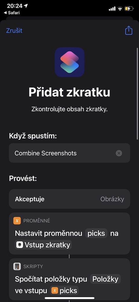 Hledáte jednoduchý nástroj pro vytváření koláží z fotografií ve vaší galerii? Nemusíte nutně procházet App Store. Zkratka s názvem Combine Screenshots vám umožní vybrat snímky z vaší galerie, spojit je do jednoduché mřížkové koláže, a poté je automaticky uloží do alba Nejnovější ve vaší fotogalerii.