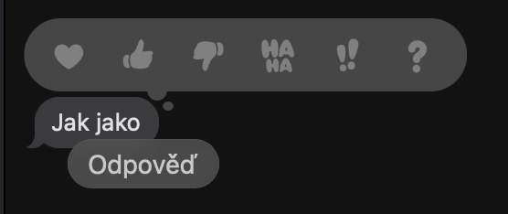Již od roku 2016, kdy vyšel macOS 10.12 Sierra pro jablečné počítače, můžete na jednotlivé zprávy rychle odpovídat pomocí reakcí, podobně jako na Facebooku. Pokud chcete na nějakou zprávu pomocí reakcí odpovědět, tak stačí, abyste na ni podrželi kurzor, a poté si vybrali jednu z dostupných reakcí – konkrétně je k dispozici srdíčko, palec nahoru a dolů, haha, vykřičníky a otazník. Nově se kromě reakcí zobrazuje také kolonka Odpověď, díky čemuž je možné přímo odpovědět na konkrétní zprávu – především ve skupinových konverzacích tak bude větší pořádek. Využít můžete také klávesové zkratky – pokud stisknete Command + T, tak můžete rychle zaslat reakci na poslední zprávu. Stačí poté stisknout číslo od 1-6 podle pořadí reakcí. Pokud stiskněte Command + R, můžete rychle přímo odpovědět na poslední zprávu.