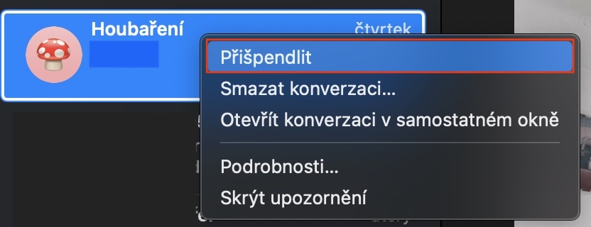 Každý z nás máme nějaké kontakty, se kterými si dopisujeme prakticky každý den. Pořadí konverzací se automaticky mění sestupně podle toho, kdo vám napsal naposledy – to znamená, že prakticky nikdy nebudete mít jednu konverzaci vždy na stejném místě. Stačí, aby vám například během jednoho dne přišly různé ověřovací zprávy, popřípadě zprávy od kurýra, a oblíbené konverzace jsou rázem fuč. Nově si však konverzace můžete připnout – stačí na tu chtěnou klepnout pravým, a poté zvolit Přišpendlit. Tímto se konverzace objeví v horní části Zpráv. K těmto připnutým konverzacím se dostanete jednoduše klepnutím, popřípadě lze využít klávesovou zkratku Command + 1-9 s tím, že 1 vám ihned zobrazí první konverzaci9 tu devátou. Tato funkce je k dispozici i na iPad, pokud máte připojenou externí klávesnici.