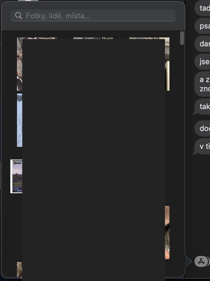 Plnohodnotný App Store pro iMessage na Macu bohužel tak úplně není k dispozici, a to i přesto, že se ve Zprávách tlačítko s ikonou App Store nachází – nedá se však nic dělat. Výše už jsme si uvedli dva případy, ve kterých je nutné tohle zmíněné tlačítko stisknout. Tlačítko App Store je poté nutné stisknout i v případě, že byste někomu chtěli přímo odeslat fotografii či video přímo z vaší aplikace Fotky. Díky tomu nemusíte zdlouhavě konkrétní snímek hledat přímo v aplikaci Fotky, a poté jej složitě přetahovat do okna Zpráv. Chcete-li rychle ve Zprávách odeslat fotku, tak si najeďte do konkrétní konverzace, a poté klepněte nalevo na ikonu App Store. Z menu, které se zobrazí, vyberte Fotky. Poté se zobrazí nové malé okno, kde stačí konkrétní fotku najít – využít můžete i vyhledávání.