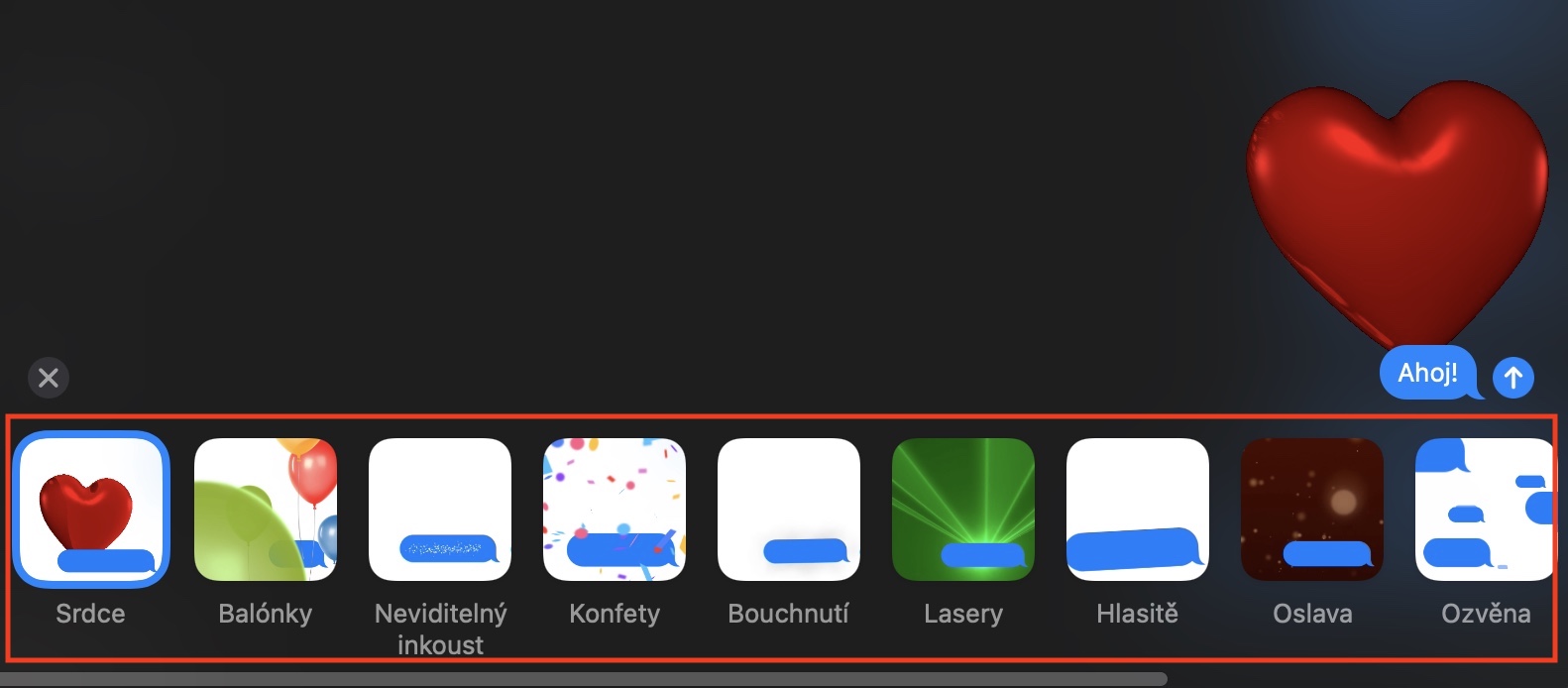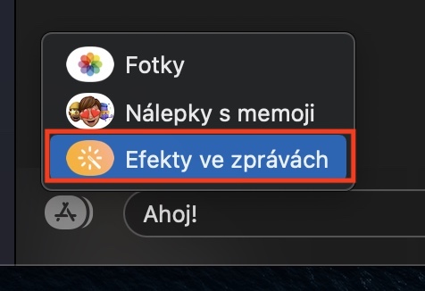 Na iPhonu a iPadu můžete již po dobu několika let odeslat zprávu společně s efektem. Co si budeme nalhávat, nijak extra často tuto funkci nevyužijeme, v občasných situacích se ale může hodit – například pokud chcete na něco upozornit. Dobrou zprávou je, že s příchodem macOS 11 Big Sur se efekty v aplikaci Zprávy konečně objevily i na jablečných počítačích. Jestliže chcete nějaký efekt zaslat, tak stačí, abyste klasicky do textového pole napsali nějakou zprávu. Nyní ale zprávu neodesílejte – je nutné, abyste nalevo od textového pole klepnuli na ikonu App Store, a poté z menu vybrali Efekty ve zprávách. Nyní si stačí vybrat ten efekt, který potřebujete, a nakonec klepnout na šipku pro odeslání vpravo dole.
