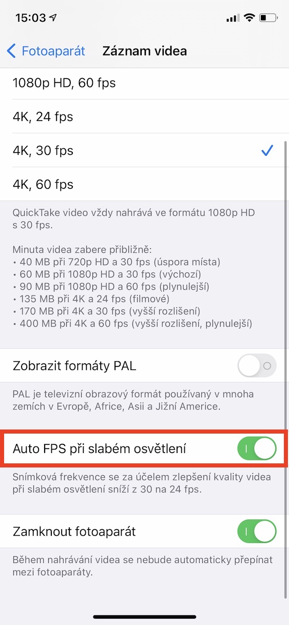 Pomocí výše uvedeného postupu lze tedy na iPhone jednoduše deaktivovat automatickou úpravu snímků za sekundu při špatných světelných podmínkách. Rozhodně to ale neberte tak, že je Auto FPS nechtěná funkce, a že byste ji měli urychleně vypnout. V mnohých případech dokáže Auto FPS doopravdy pomoci v tom, aby byl výsledný záznam o dost lepší. V ojedinělých situacích však Auto FPS vytváří nechtěné efekty, nejčastěji v podobě rozmazání a problikávání – přesně v tuto dobu se Auto FPS vyplatí deaktivovat. Postupem času se situace pro deaktivaci Auto FPS naučíte rozpoznávat.