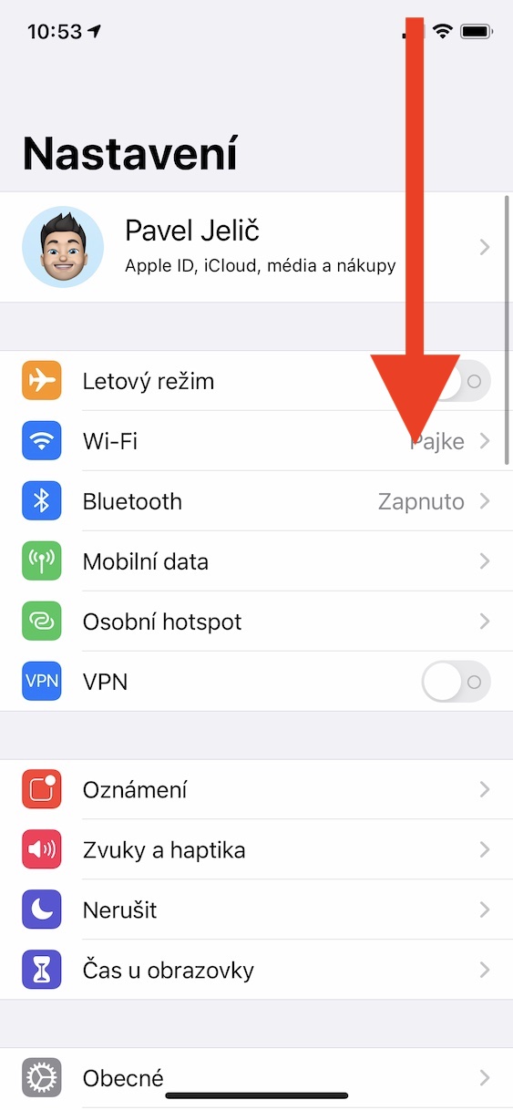 - Na iPhone s Face ID přejeďte prstem směrem dolů z pravé horní části displeje;
