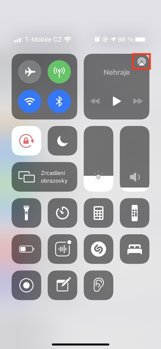 - V tomto prvku klepněte vpravo nahoře na malou ikonu AirPlay.