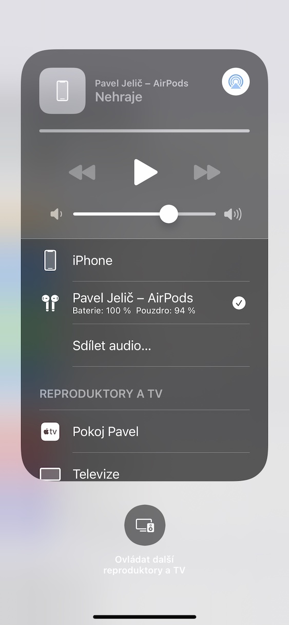 Výše uvedeným způsobem se tedy můžete jednoduše a rychle připojit ke zvukovému zařízení, které máte v dosahu – není nutné zbytečně chodit do Nastavení -> Bluetooth, kde poté konkrétní zařízení hledat. Aby tento postup fungoval, tak je samozřejmě nutné, aby bylo na iPhonu Bluetooth zapnuté, kromě toho je nutné, jak už jsem zmínil, aby bylo samotné zařízení k vašemu jablečnému telefonu už alespoň jednou připojené. V opačném případě je prvně nutné zařízení k telefonu samozřejmě připojit, až poté se na něj budete schopni přepnout z ovládacího centra.