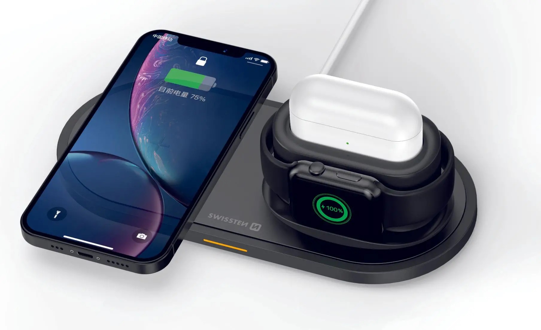 Hledáte-li univerzální bezdrátovou nabíječku schopnou nabíjet současně iPhone, AirPods a Apple Watch a to ideálně za nízkou cenu? Pak jste jí právě našli. Je jí model Wireless 3v1 od výrobce SWISSTEN. Jedná se o líbivý nabíjecí dock v černé barvě s nabíjecí plochou pro smartphone s výkonem 10W, magnetickým dockem pro Apple Watch s výkonem 2W a Lightning stojánkem pro AirPods s výkonem 3W. Díky této kombinaci si tak můžete být jistí tím, že si na pomalé nabíjení stěžovat nikdy nebudete.