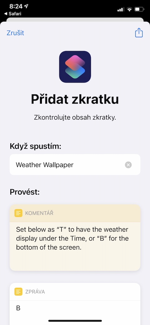 Postrádáte na uzamčené obrazovce vašeho iPhonu zobrazení informací o aktuálním počasí? Pak byste si určitě měli stáhnout zkratku s názvem Weather Wallpaper. Tento užitečný pomocník vám umožní nastavit si na uzamčenou obrazovku vašeho iPhonu tapetu spolu se základním údaji o stavu počasí. Při nastavování zkratky si můžete zvolit, zda se informace budou zobrazovat na horní nebo na spodní straně obrazovky nebo nastavit pozadí textu pro lepší čitelnost. Zkratka Weather Wallpaper vyžaduje přístup k nativním Fotkám na vašem iPhonu a k vaší poloze.