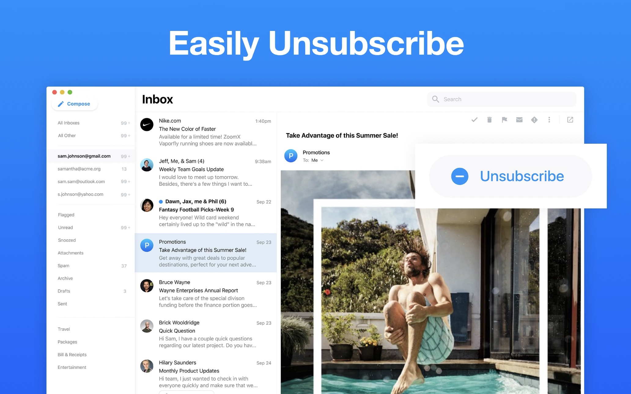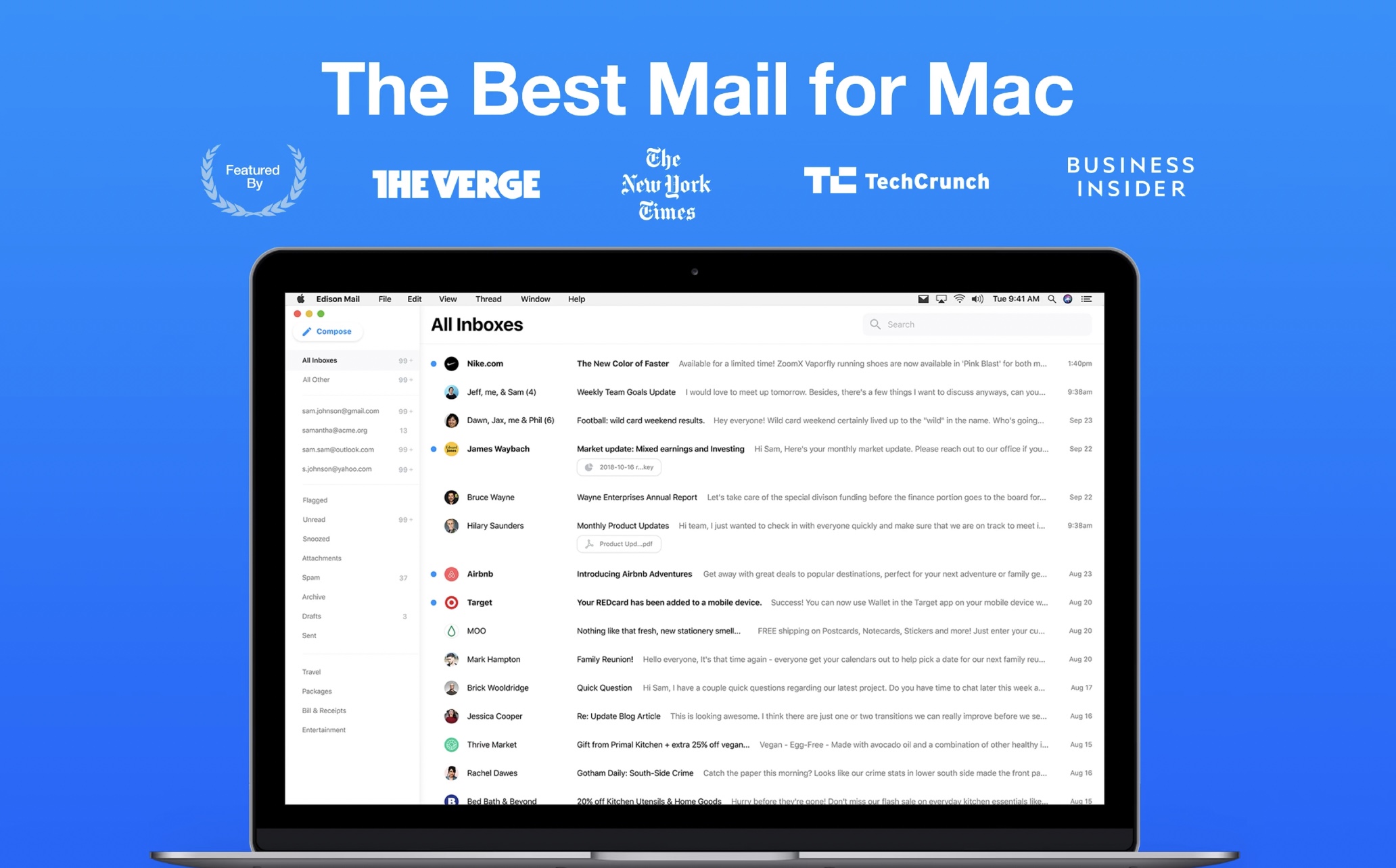 Poslední aplikací v našem seznamu e-mailových klientů je Edison Mail. Vývojáři této aplikace se zaměřují především na vývoj mobilních verzí, rozhodně si ale nemyslete, že by byla verze pro macOS nějakým způsobem pozadu. V rámci Edison Mail můžete jednoduše spravovat veškeré vaše e-mailové schránky na jedno místě. V rámci této aplikace můžete jednoduše spravovat jakékoliv e-mailové schránky – ať už máte účet od Googlu, anebo nějakou svojí, která je vedená pod vlastní doménou. Edison Mail rozhodně není pouhým e-mailovým klientem, jedná se spíše o jakéhosi asistenta. V aplikaci si můžete nechat zobrazit informace o počasí, kromě toho vás klient dokáže upozornit například na příchozí balíček (tedy pokud to zjistí z příchozího e-mailu) anebo třeba umí automaticky vaší adresu odstranit ze seznamu pro odesílání reklamních sdělení a newsletterů. Edison Mail je k dispozici naprosto zdarma.