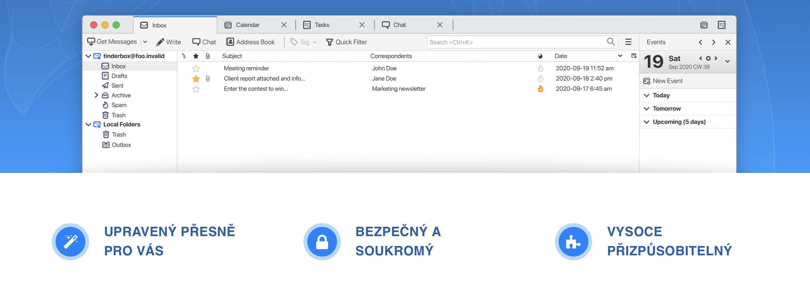 Pokud hledáte e-mailového klienta, který je k dispozici zdarma a zakládá si především na bezpečnosti soukromí, tak by se vám mohl líbit Thunderbird. Stejně jako Outlook je tato aplikace taktéž velmi známá, každopádně málokdo ví, že je k dispozici i na macOS. Thunderbird pochází od vývojářů úspěšného prohlížeče Mozilla a nabízí opravdu mnoho funkcí, které vás mohou zaujmout. Kromě klasického filtrování, archivování a vyhledávání nabízí Thunderbird například jednoduchou správu velkých příloh, speciální rozšíření, kterými si funkčnost můžete ještě více upravit, anebo třeba speciální příchozí schránku, která dokáže inteligentně zobrazit všechny e-maily na jednom místě, a to z vícero účtů. Jak už bylo zmíněno, tak si Thunderbird zakládá především na bezpečnosti a ochraně soukromí, takže dokáže odhalit například phishing a další hrozby.