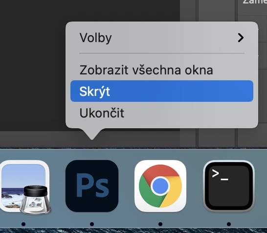- Berte v potaz, že minimalizace a skrytí jsou dvě rozdílné akce. Pro skrytí klepněte na aplikaci pravým tlačítkem a zvolte Skrýt.