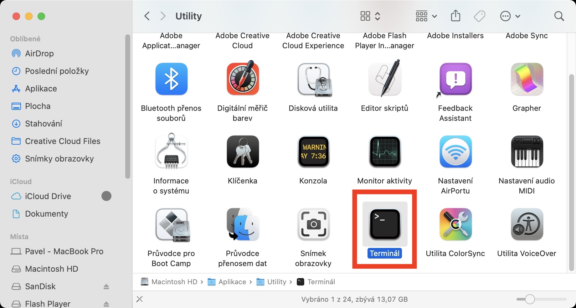 - Otevřete nativní aplikaci Terminál a zkopírujte si jeden z příkazů, které přikládám níže: