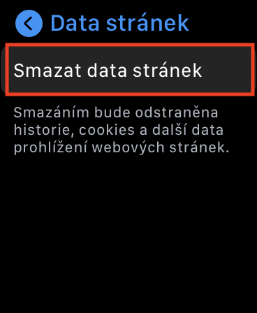 Věřte nebo ne, i na Apple Watch můžete „surfovat“ na internetu. Postup je v tomto případě velmi jednoduchý – stačí, abyste si do Zpráv odeslali odkaz na nějakou webovou stránku, a poté na něj klepnuli. Pokud tento postup praktikujete často, tak se do paměti Apple Watch mohou uložit různá data stránek, jež zabírají místo v úložišti. Tato data odstraníte přímo na Apple Watch tak, že stiskněte digitální korunku a přesunete se do aplikace Nastavení. Jakmile tak učiníte, tak otevřete sekci Obecné a sjeďte o kus níže. Zde poté rozklikněte možnost Data stránek, poté klepněte na Smazat data stránek a nakonec akci potvrďte stisknutím Smazat data.