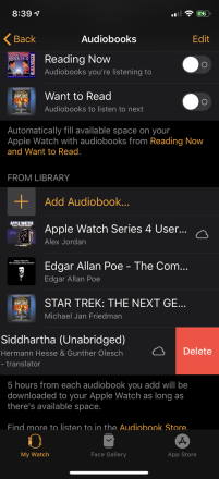 Stejně jako hudbu a fotky, tak si do úložiště Apple Watch můžete uložit podcasty a audioknihy. I tento obsah se samozřejmě musí někam uložit, a tak zabírá místo v úložišti Apple Watch. Co si budeme nalhávat, většinu podcastů si poslechneme jen jednou, a tak je zbytečné je zbytečně skladovat v úložišti zařízení, naprosto stejně to funguje i u audioknih. Pro nastavení toho, aby se do Apple Watch ukládaly jen nadcházející epizody podcastů, se přesuňte do aplikace Watch, a poté níže klepněte na Podcasty. Zde stačí zaškrtnout Nadcházející. Co se týče audioknih, tak přejděte v aplikaci Watch do sekce Audioknihy, kde můžete pomocí přepínače deaktivovat doporučené audioknihy, popřípadě vpravo nahoře klepněte na Upravit, a poté uložené audioknihy odstraňte.