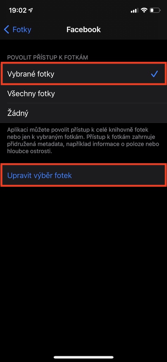 Kromě toho, že na Facebooku můžete komunikovat především textem, tak k určitým příspěvkům můžete přidat také obrázek. Nedávno však v iOS přibyla funkce, pomocí které si můžete nastavit konkrétní obrázky, které chcete určité aplikaci zpřístupnit. To znamená, že aplikace nedostane přístup ke všem obrázkům ve vaší galerii a nedojde tak k potenciálními zneužití. Pro nastavení této možnosti přejděte na vašem iOS zařízení do aplikace Nastavení, kde níže rozklikněte kolonku Soukromí, a poté Fotky. Nyní v seznamu aplikací najděte Facebook, klepněte na něj a vyberte možnost Vybrané fotky. Tyto fotky lze pak vybrat klepnutím na Upravit výběr fotek, anebo je můžete upravit v případě potřeby přímo z aplikace.