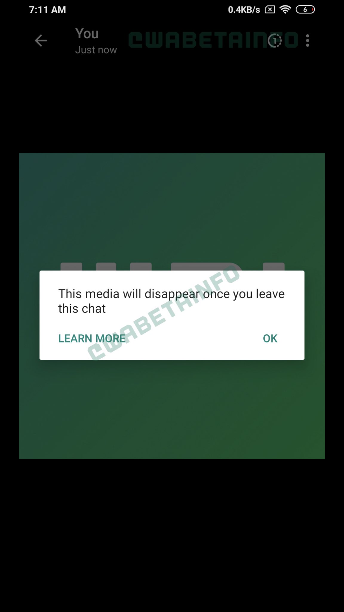 V beta verzích WhatsApp pro iOS se objevila novinka ve formě automatického mazání zaslaných/obdržených fotek, která funguje na podobném principu jako Snapchat. To jinými slovy znamená, že fotka, u které bude po jejím zaslání nastaveno smazání nebude možná jednak na druhém zařízení možné uložit a jednak ani zpětně prohlédnout. Po určitém čase se totiž automaticky smaže. Totéž pak platí i při uzavření vlákna s daným chatem. Co se týče možnosti screenshotů, ty je zatím možné provádět bez zaslání oznámení protistraně. Dá se ale předpokládat, že i je nakonec WhatsApp ošetří podobně, jako tomu bylo u Snapchatu.