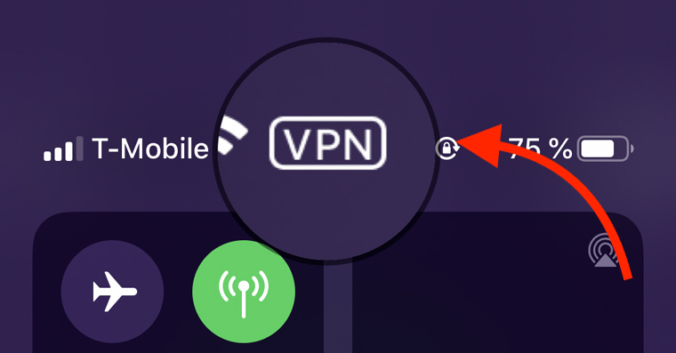 ikona vpn v ovladacim centru na iphonu