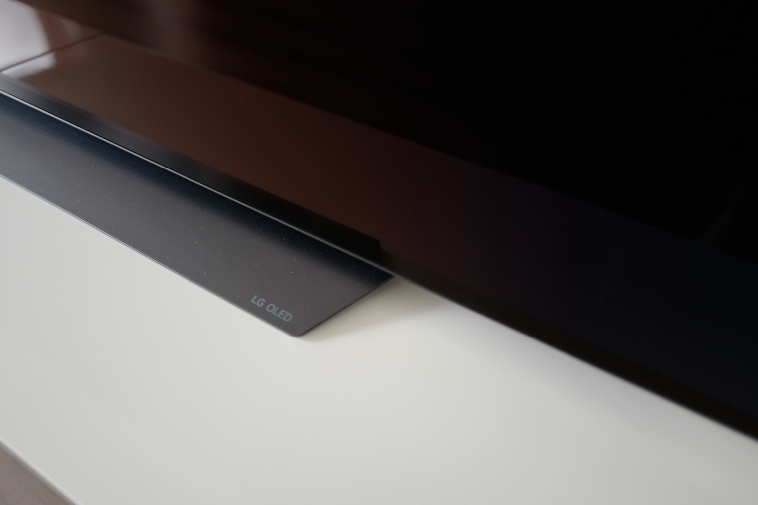 Zcela upřímně je u televizoru pro mě design asi to nejméně podstatné ze všeho. Přesto je televizor, obzvlášť s úhlopříčkou 196 cm, věcí, která bude tvořit dominantu vašeho obývacího pokoje, a tak je super, že v tomto ohledu LG nabízí poměrně líbivý design. Televizor je extrémně tenký (dokonce tenčí než iPhone), což vzhledem k velikosti působí velmi zajímavě, ale také velmi nestabilně. Celou plochu totiž drží jen spodní stojan, do kterého je namontována samotná obrazovka, a i když stojan váží více než 20 kg, přesto se vám bude první dny zdát, že je vše poměrně vachrlaté. Časem si však zvyknete a zjistíte, že pád televizoru skutečně nehrozí.
