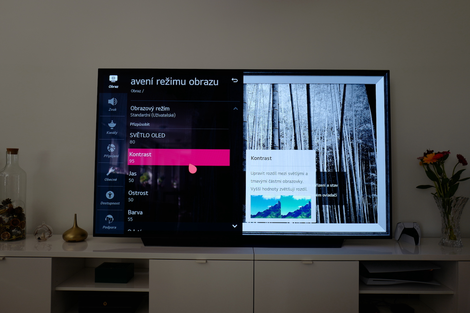 Co se pak nějakého menu a nastavování týká, vše je samozřejmě k dispozici v češtině, vše je velmi intuitivní a změny vidíte v reálném čase přímo během toho, co jednotlivé funkce nastavujete. Za celou dobu, co mám televizi doma, do ní dorazila jedna nebo dvě aktualizace, které mě ničím neobtěžovaly a nainstalované byly zhruba za dvě minuty.