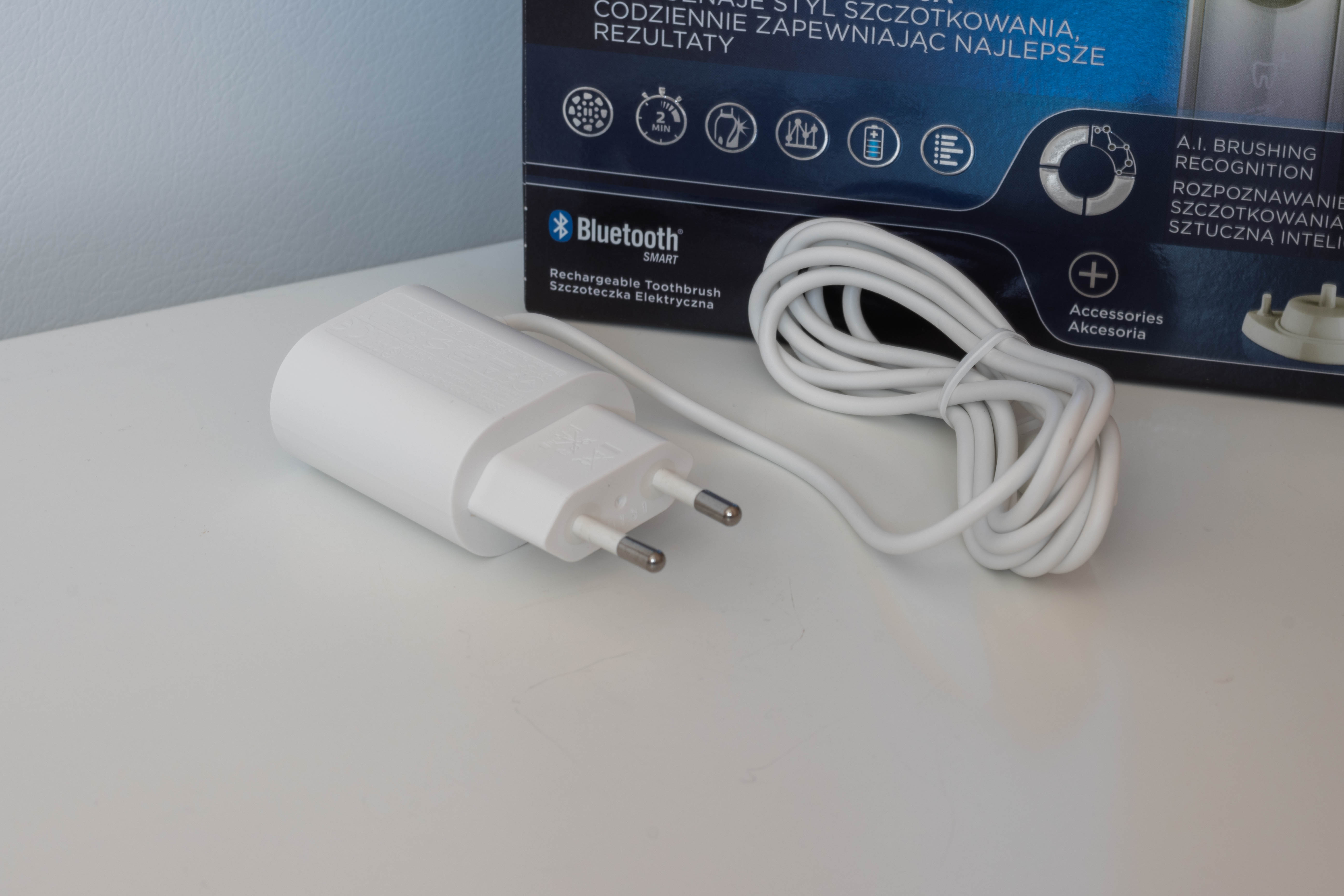 Dost ale bylo rozplývání se nad vůní produktu, přejděme raději na jeho tvrdá technická data – ani za ty se totiž nemusí kartáček v žádném případě stydět. Ostatně, vzhledem k tomu, že disponuje kromě Bluetooth sloužícím pro propojení se smartphonem třeba i časovačem čištění zubů, tlakovým a pohybovým senzorem, indikátorem stavu baterie, umělou inteligencí a oscilačně-rotační technologií čištění zvládající až 48 000 pulzů za minutu se tomu ani nelze divit. Co se pak týče výdrže baterie, ta by měla být až 2 týdny. Závisí však samozřejmě na tom, jak intenzivně čistíte, potažmo jak často a ve výsledku i jakými programy a tak podobně. Mě osobně vydržel kartáček na jedno nabití 10 dní s tím, že jeho doba nabíjení poté byla asi 4 hodiny. O krátkou záležitost se tedy nejedná, což bych však za sebe asi ani neoznačil za mínus, jelikož nabíjecí stojánek přímo evokuje k tomu umístit jej přímo do koupelny a kartáček na něj denně odkládat, čímž si zajistíte de facto jeho nekonečnou baterii.
