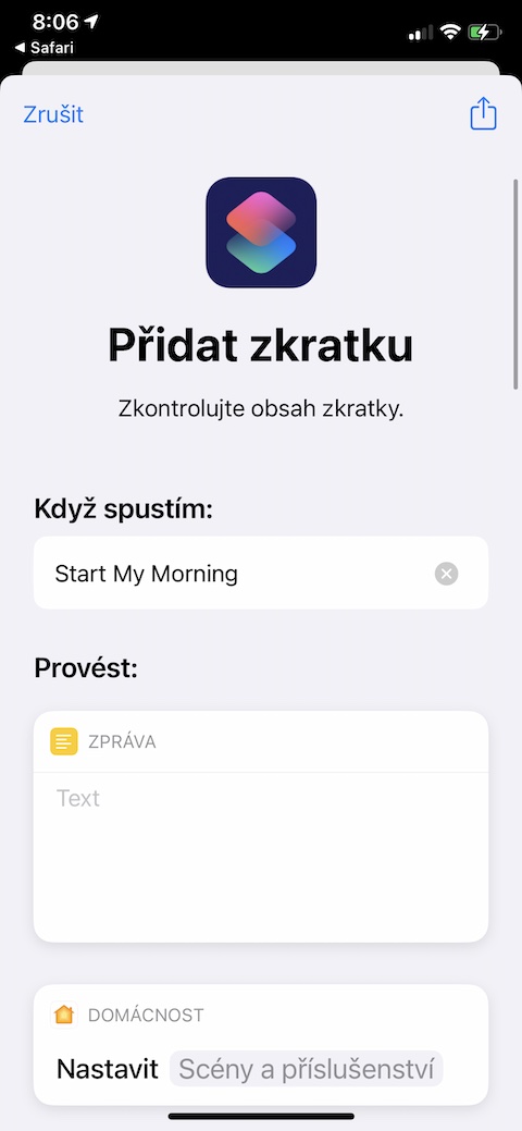 Zkratka Start My Morning vám usnadní ranní rituály a připraví vás na daný den. V jejím rámci si můžete nastavit například různé automatizace, zkratka vám také sdělí důležité informace o počasí, které vás ten den čeká. Nezapomeňte si v nastavení zkratky přizpůsobit oslovení.