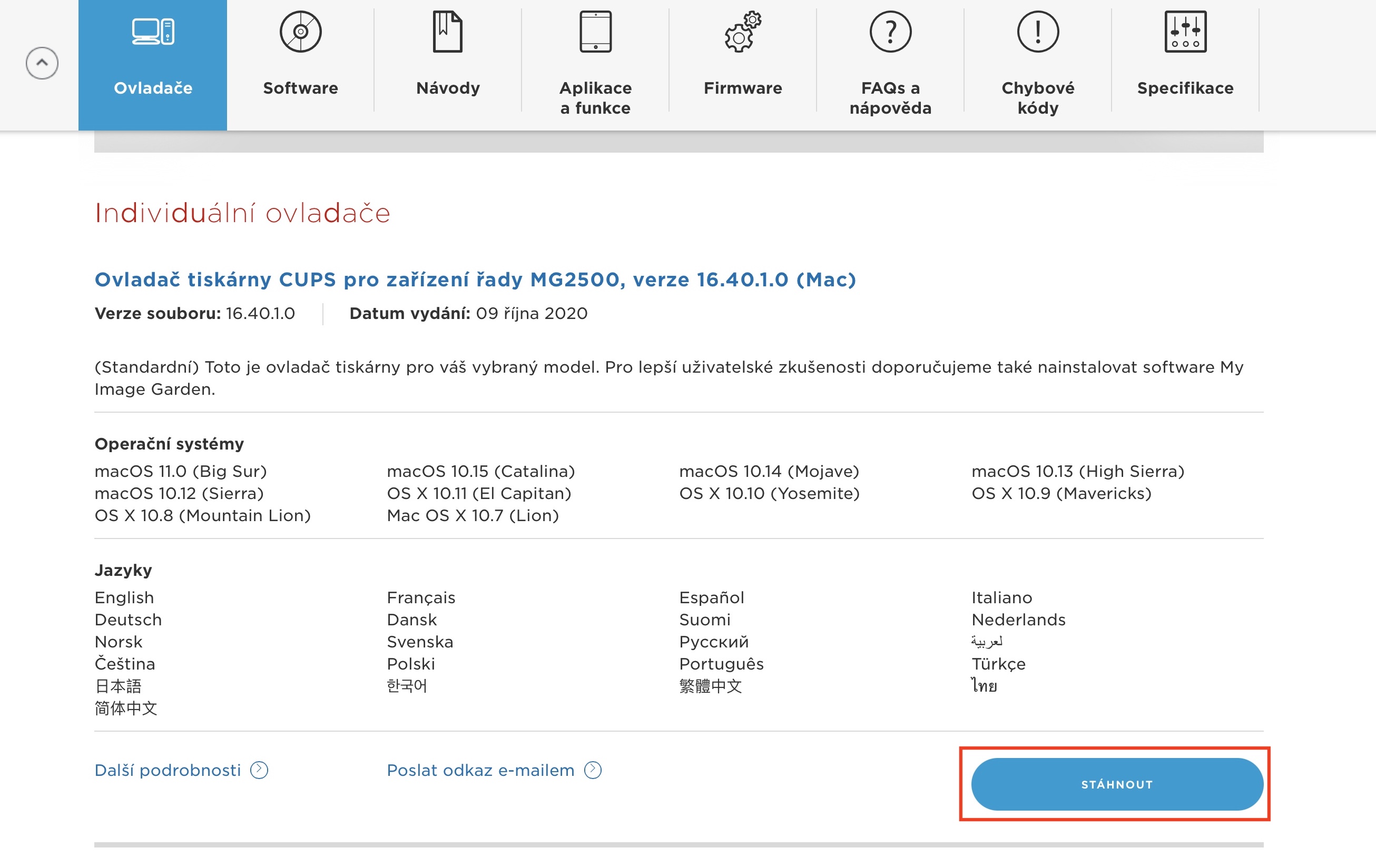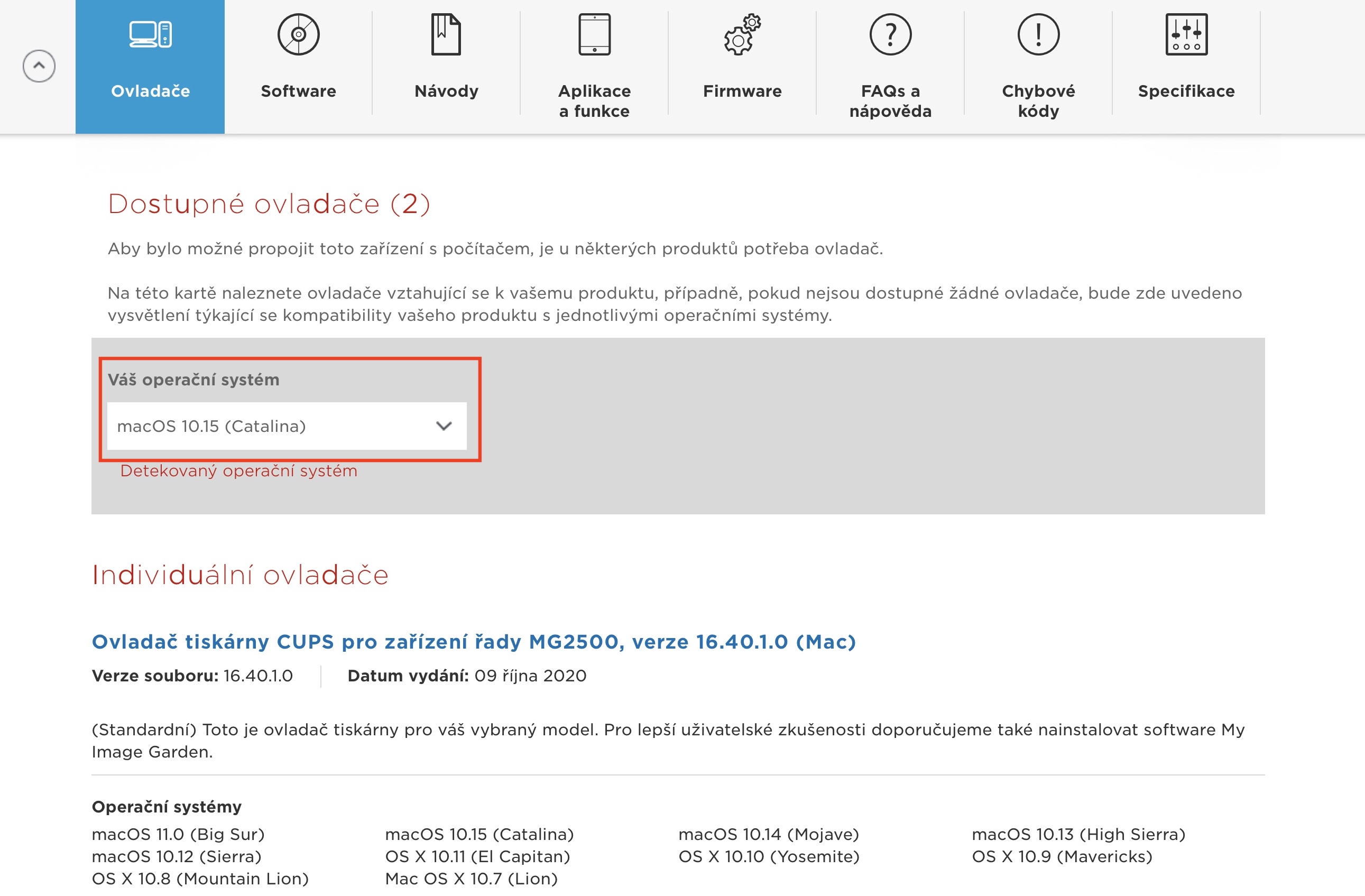 - V mnoha případech dojde k automatické detekci verze vašeho operačního systému macOS. Nejčastěji dojde k tomu, že konkrétní ovladač není k dispozici na vaši aktuální verzi macOS, ale na tu několik let starou.
