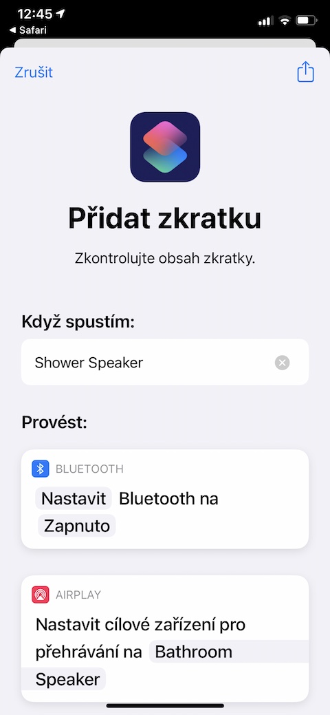 Pouštíte si ve sprše rádi hudbu z reproduktoru? Zkratka Shower Speaker vám umožní přesměrovat hudbu z vašeho iPhonu do libovolného reproduktoru, a zastaví přehrávání po vámi stanoveném časovém intervale. Zkratku lze samozřejmě použít z jakéhokoliv jiného Bluetooth reproduktru. Před spuštěním zkratky je zapotřebí v jejím nastavení určit reproduktor, ze kterého se má hudba přehrávat.