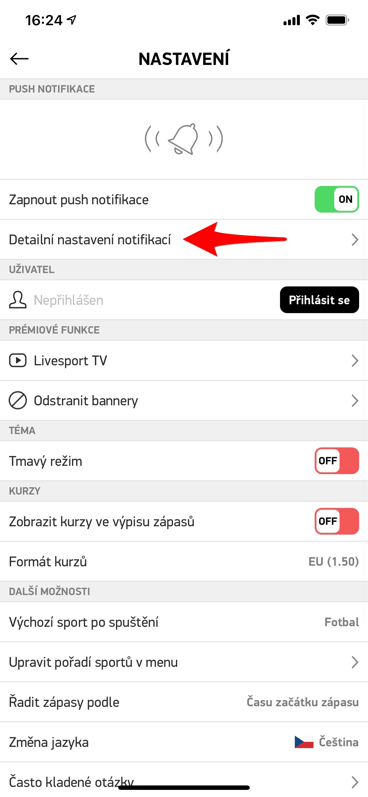 Abyste byli v centru dění, je samozřejmě příhodné být informováni formou notifikací. Těch ale aplikace nabízí neuvěřitelné množství. A čím víc obsahu sledujete, tím víc vám jich samozřejmě chodí. Proto je také vhodně věnovat se tomu, které chcete dostávat a které ne. Stačí k tomu jít do Nastavení aplikace, kde hned nahoře najdete Detailní nastavení notifikací. Vyberete si zde, zda je chcete dostávat z Mých zápasů, Mých týmů ale i jednotlivých sportů. Pokud kliknete na nabídku Zvuk notifikace, jste přesměrováni do systémového Nastavení, kde si lze po volbě Oznámení vybrat i to, jak má sama notifikace vypadat.