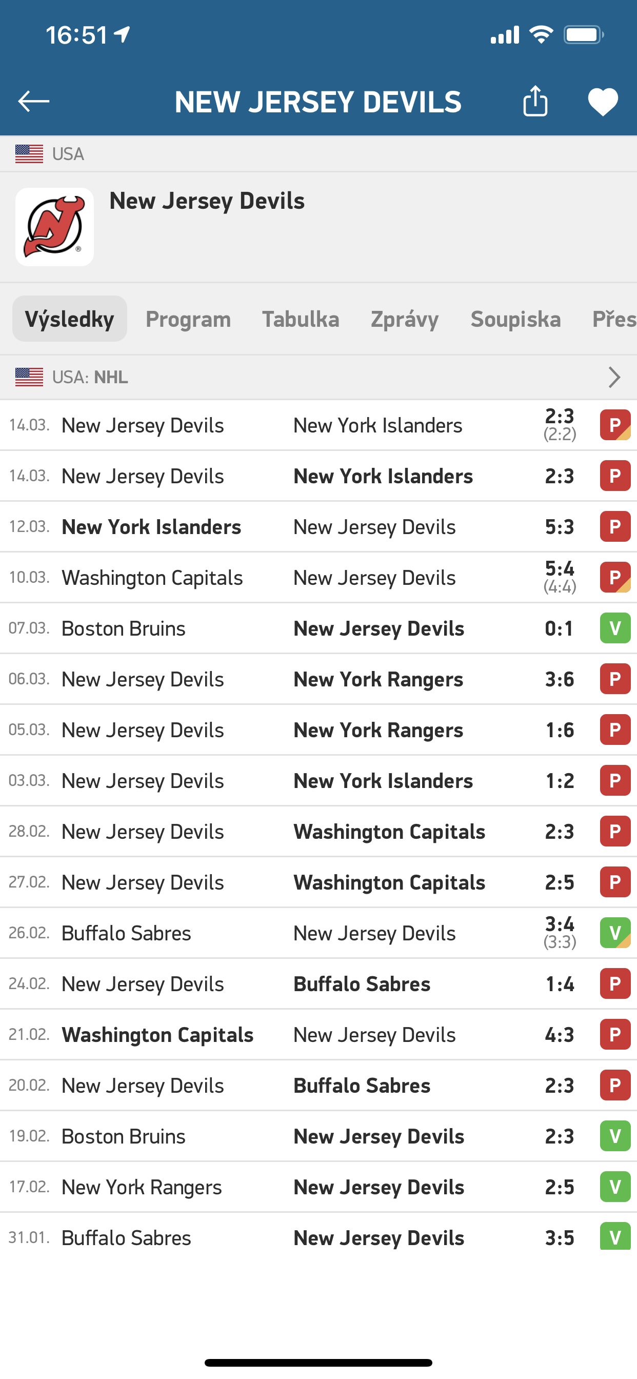 Někdy nepotřebujete vědět to, co právě probíhá, nebo to, co sportovní svět teprve čeká. Někdy si potřebujete dohledat i předchozí výsledky. K tomu máte dvě možnosti. Vpravo nahoře rozhraní se nachází ikona lupy, která symbolizuje vyhledávání. Zde zadejte tým, hráče atd., a ihned uvidíte potřebnou historii. Můžete ale jít také na stránku ligy, turnaje, závodu, nebo čehokoli jiného a zde si právě archiv rozkliknout.