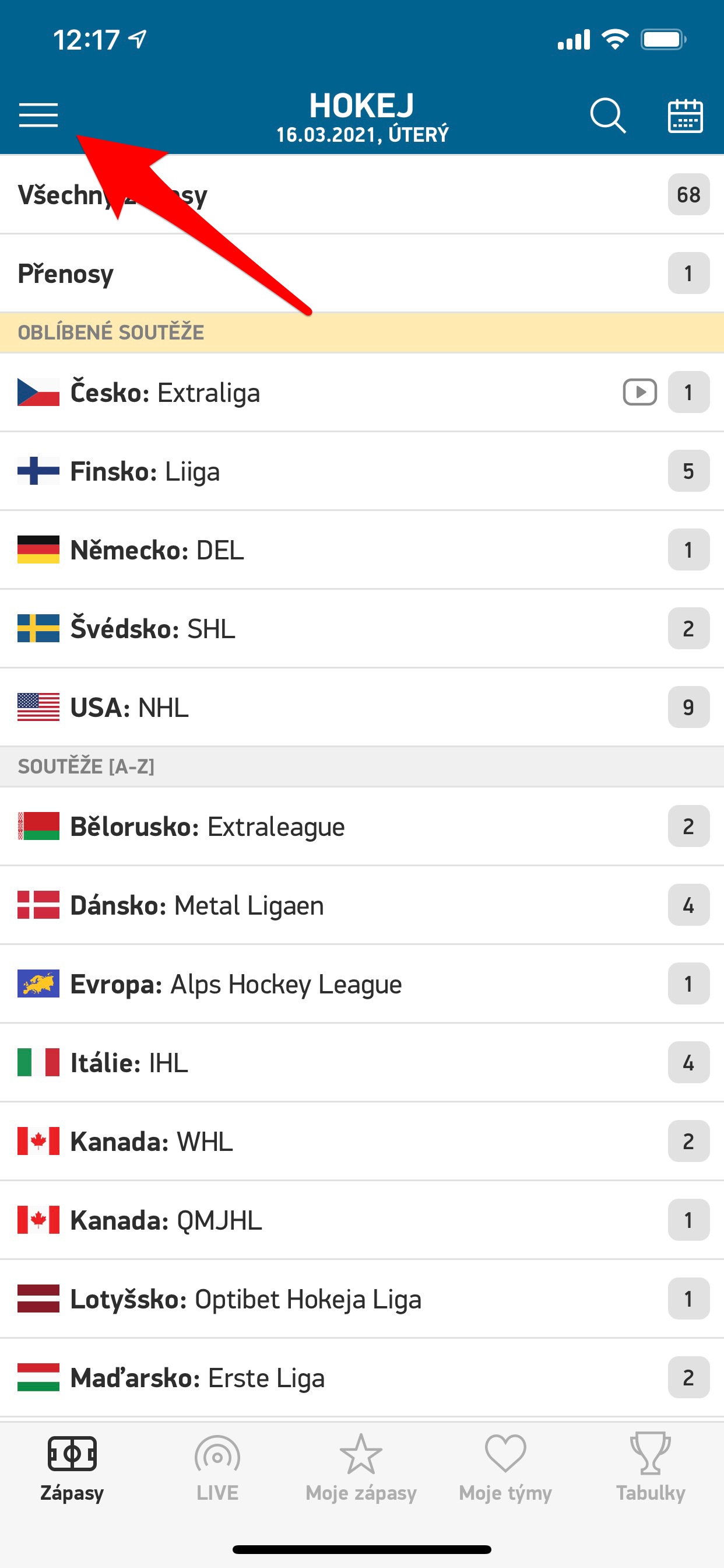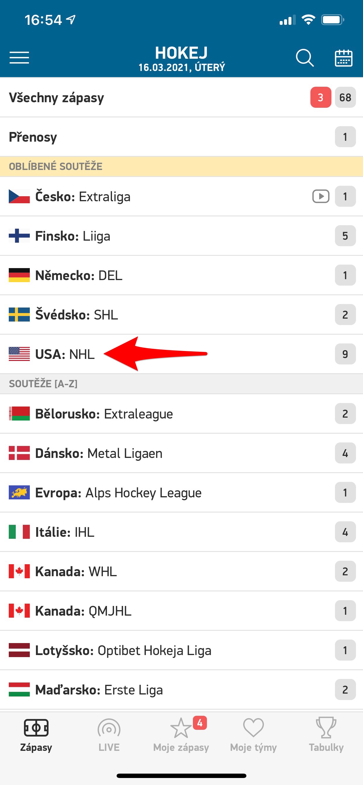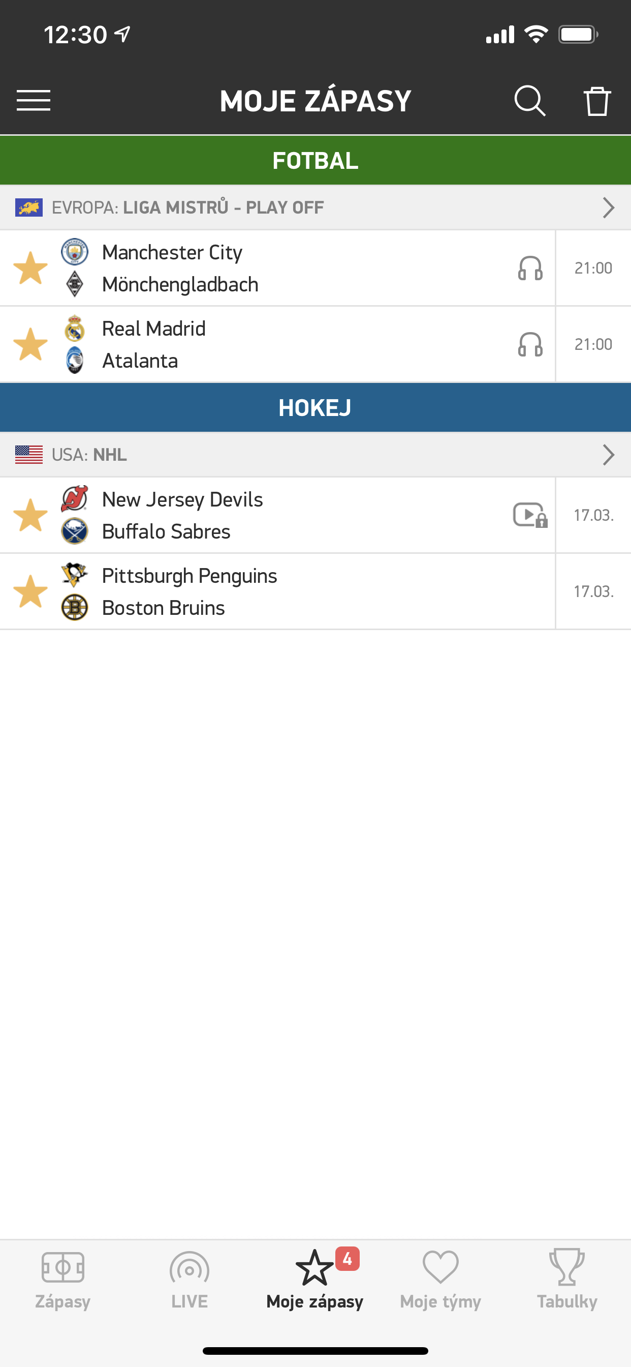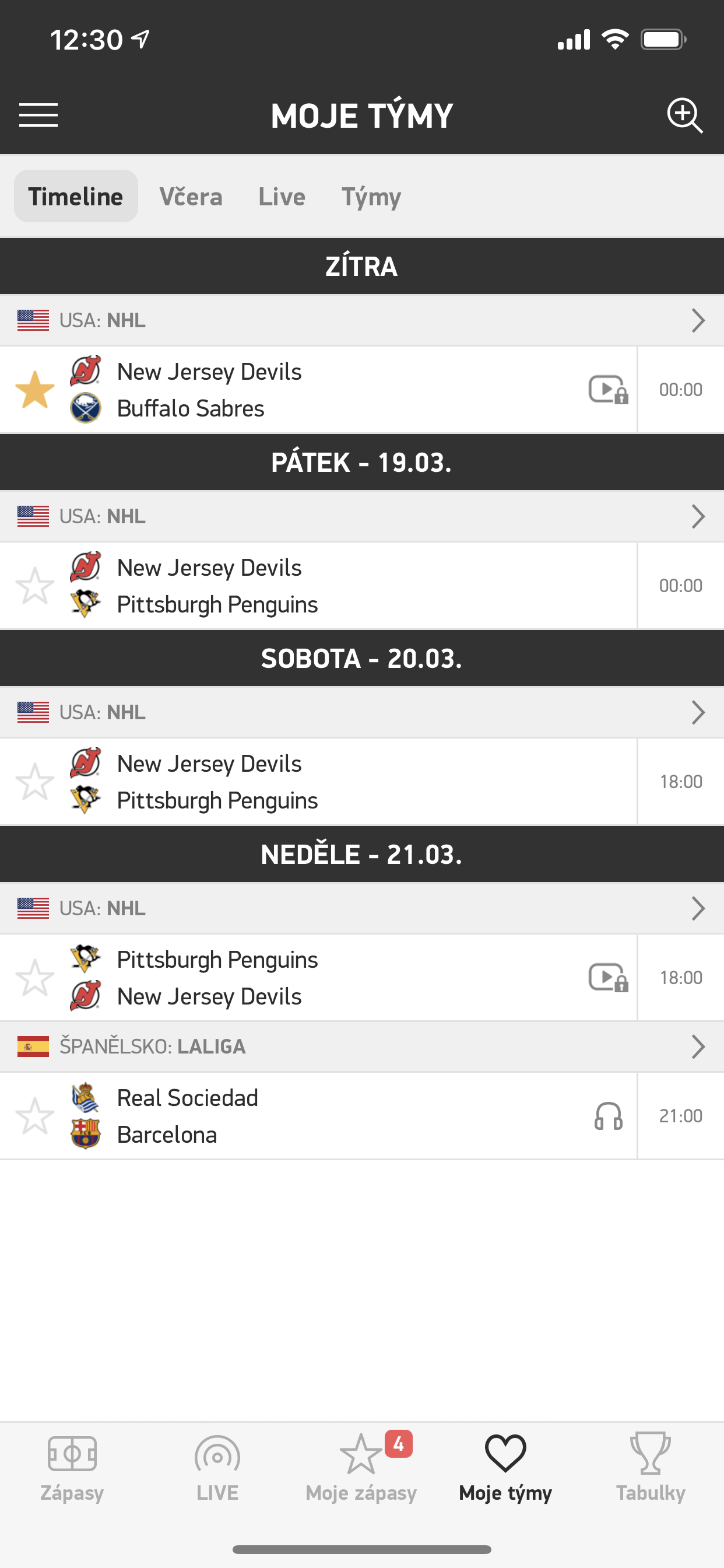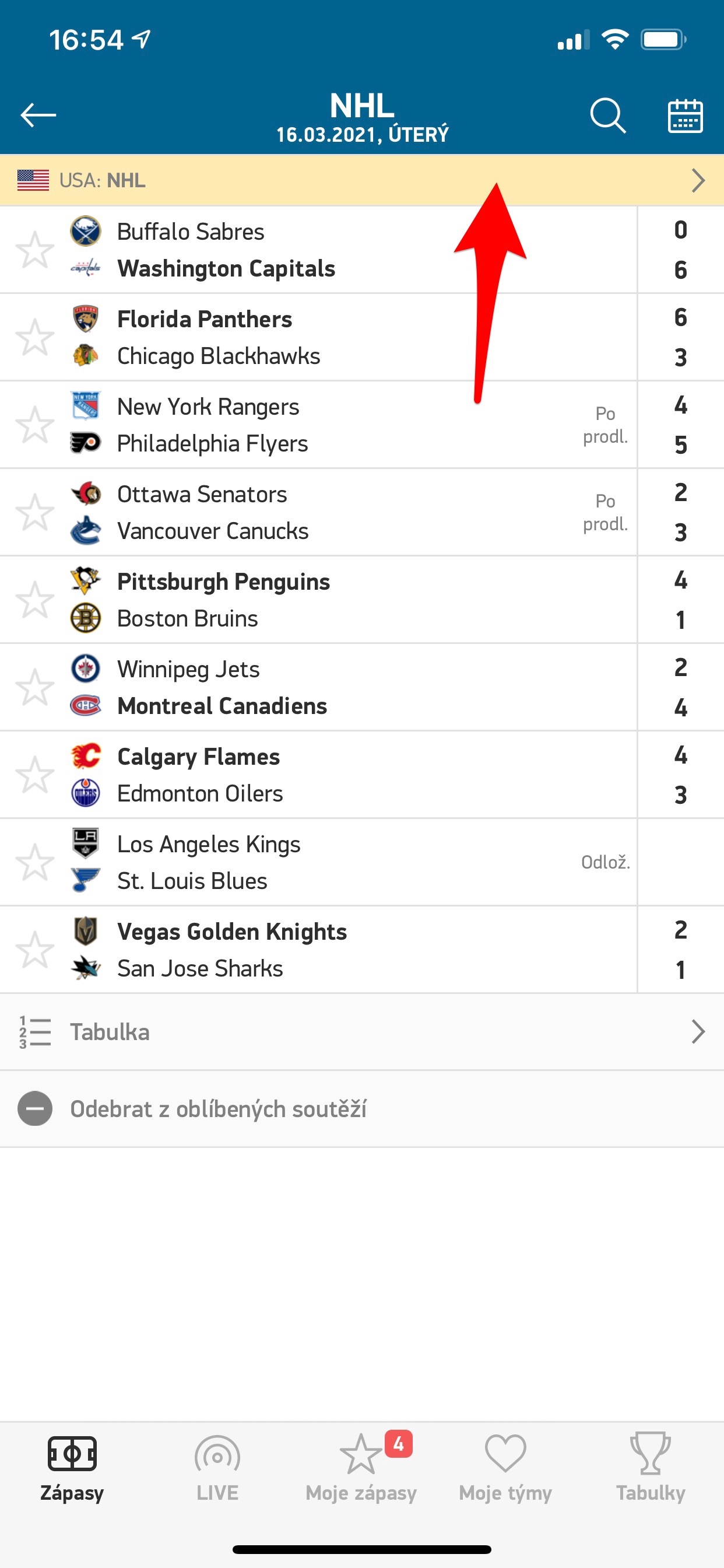 Rychle přejděte na Moje zápasy a týmy