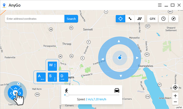 Možná vás mohlo napadnout, že jednoduchá změna lokace je v některých případech k ničemu, protože ostatní mohou vidět, že jste stále na stejné pozici. Přesně proto nabízí program AnyGo řadu dalších skvělých možností, díky kterým je možné simulovat běžný pohyb. V rámci aplikace proto narazíme na vcelku praktický joystick. Jak už vás tedy mohlo napadnout, s jeho pomocí dokážeme přesně nasměrovat naše pomyslné kroky.