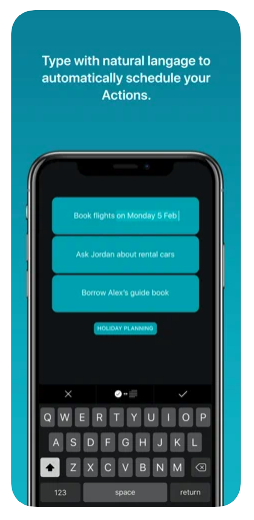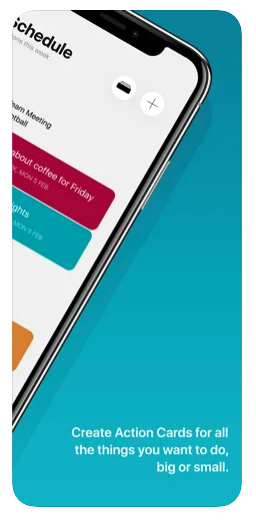 Společnost Moleskine je známá svými fyzickými diáři, nicméně i několika populárními aplikacemi. Actions je sice o úkolech, ale také o vašich myšlenkách a nápadech. Titul je však založen na jednoduchém zadávání informací. Nemusíte si hrát s jakýmikoli detaily, záznam zadáte prakticky okamžitě a doladíte jej, až na to budete mít čas. Vše zde tedy funguje na bázi digitálních karet. Není to o strukturování složitých pracovních úkolů, ale spíše o tom, abyste každý týden nezapomněli zalít květiny. Vše ovládáte jednoduchými gesty, s aplikací však umí pracovat i hlasová asistentka Siri a záloha na cloud je zde samozřejmostí.