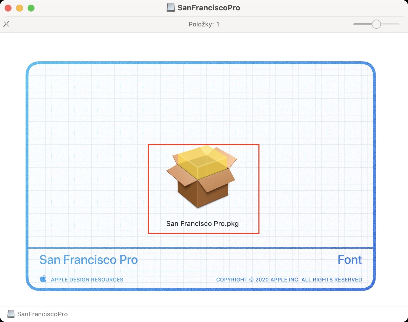 - Poté se zobrazí okno, ve kterém dvakrát klepněte na název balíčku s příponou .PKG.