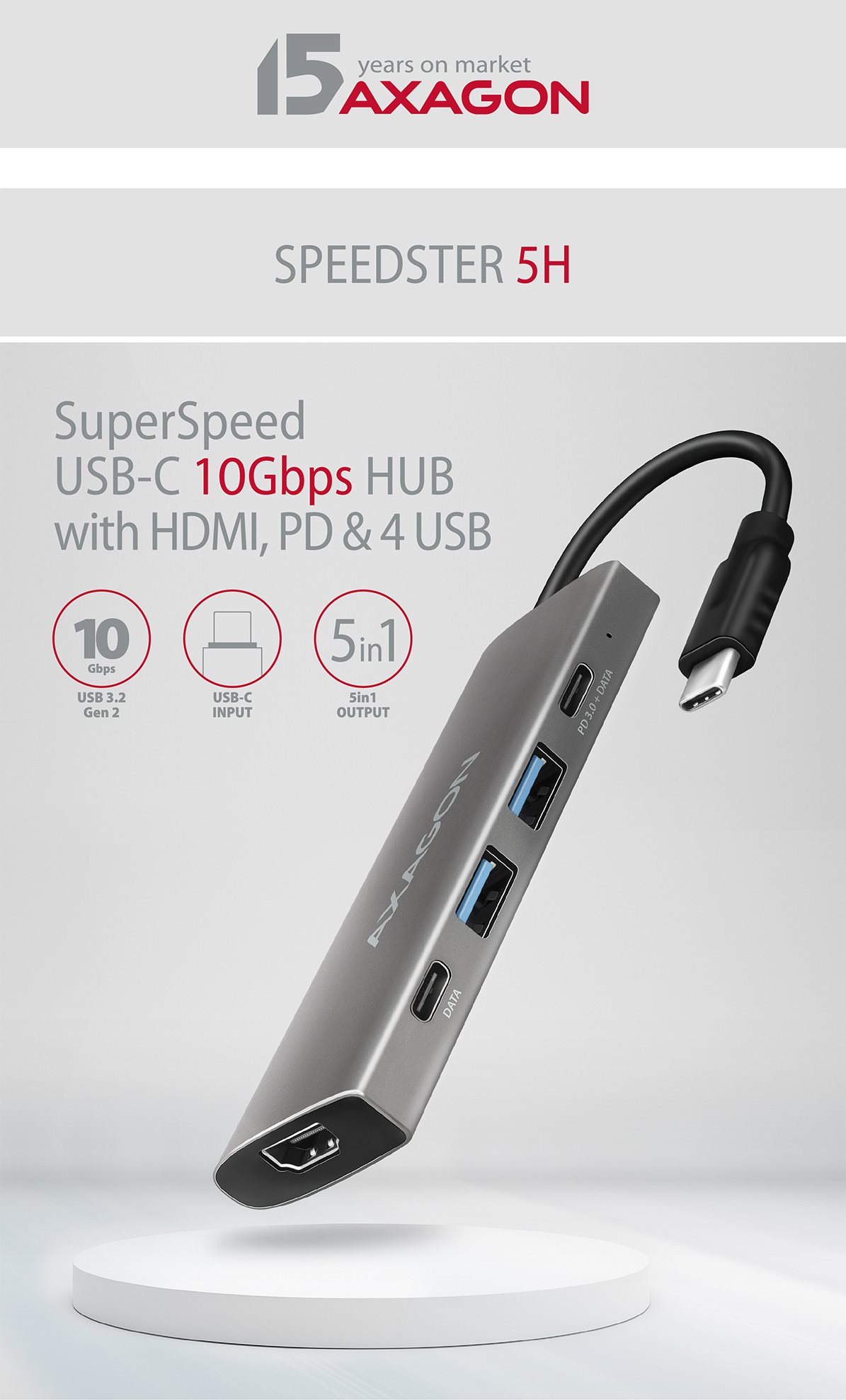 AXAGON HMC-5G2 SPEEDSTER 5H USB-C 3.2 Gen 2 Multiport Hub