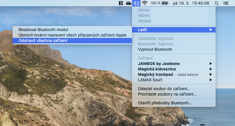Pokud výše uvedený krok nepomohl, můžete odebrat všechna vaše zařízení Bluetooth a až poté modul resetovat. Počítejte ale s tím, že v takovém případě budete následně muset všechna svá zařízení nově párovat: