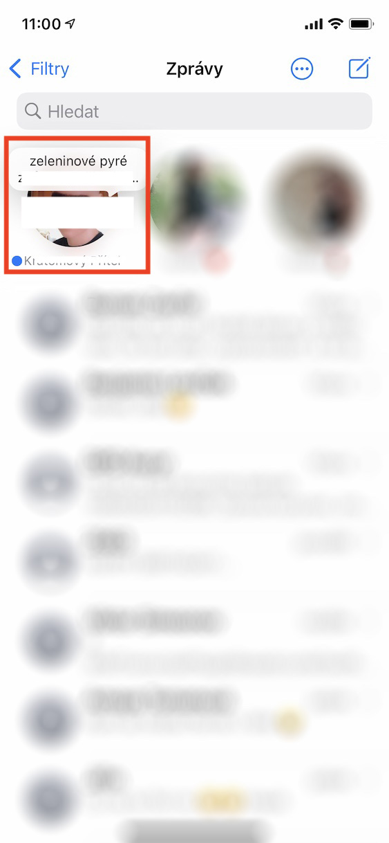 - iPhone s 3D Touch: prstem silně zatlačte na konverzaci, jejíž zprávy chcete zobrazit;